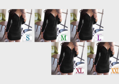 ファッションアイテムのサイズ案内のための、各サイズが入った画像を複数の画像…